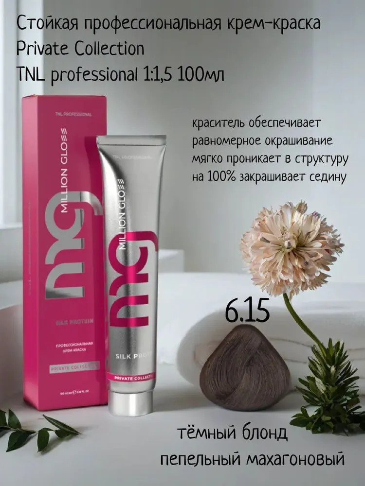 TNL Professional Крем-краска для волос с протеинами шёлка, оттенок 6.15 Темный блонд пепельный махагоновый