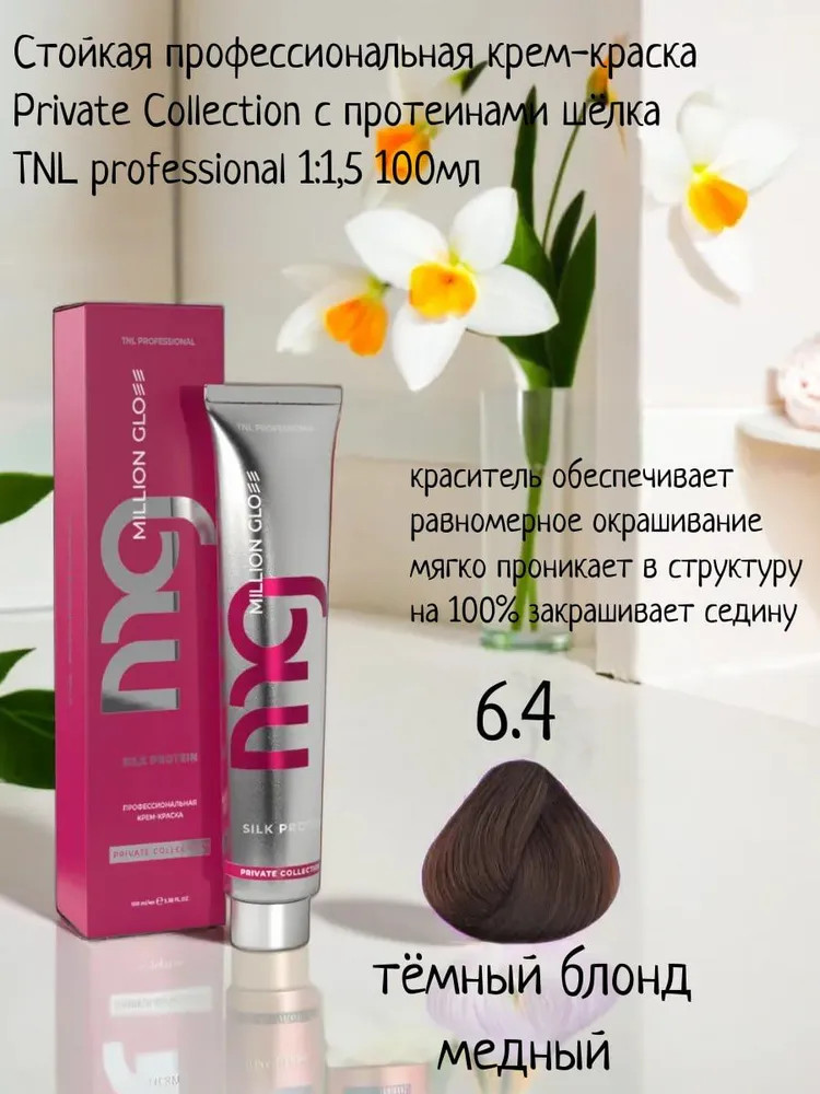 TNL Professional Крем-краска для волос с протеинами шёлка, оттенок 6.4 Темный блонд медный