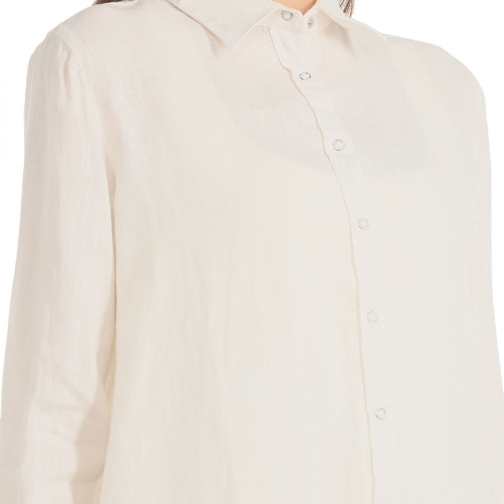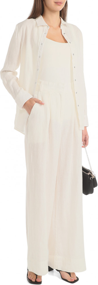 Хорошая приятная к телу рубашка, лен хорошего качества, нежный цвет (голубой), брала на размер больше, после стирки сел немного, как раз как надо, надеюсь, что больше не сядет... Удобно как второй слой на выпуск с топом или футболкой.. Единственное, мне не очень понравились кнопки, вроде не портят в целом рубашку.