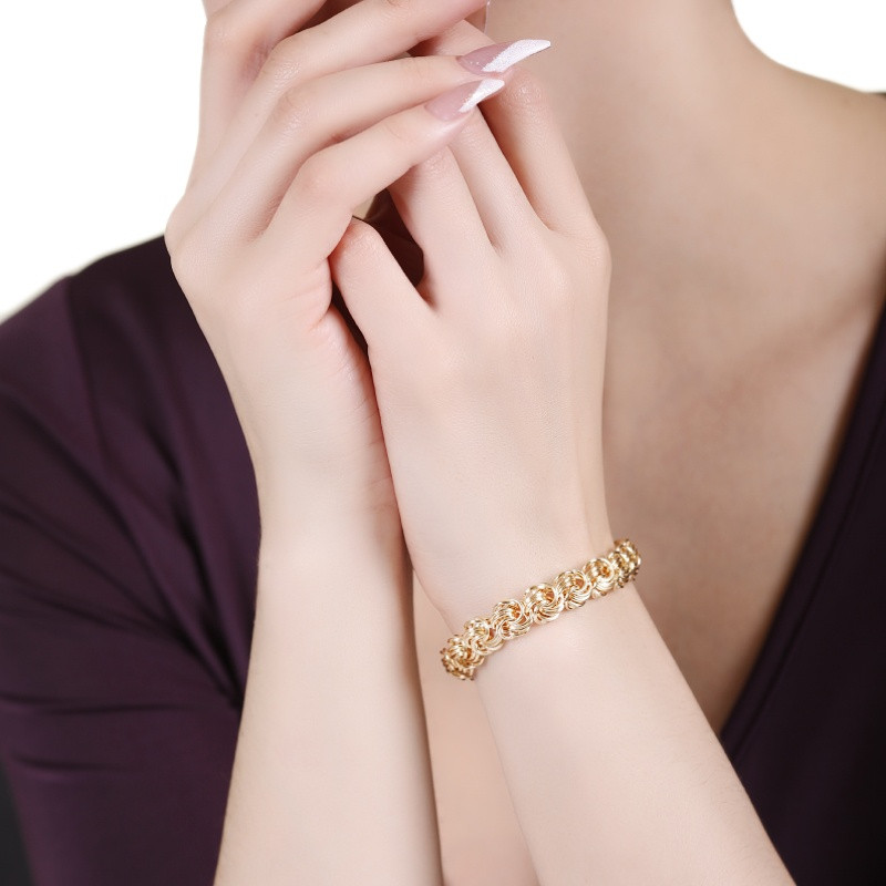 Этот великолепный браслет из золота с плетением в стиле «розочка» — символ изысканности и силы. С его элегантным дизайном и утонченными деталями он привлечет восхищенные взгляды окружающих, подчеркивая вашу уверенность и стиль. Созданный специально для женщин, этот браслет сочетает в себе элегантность и смелость, делая его идеальным аксессуаром для любого образа. Без вставок, он выглядит чисто и минималистично, прекрасно дополняя вашу коллекцию украшений и подчеркивая ваш неповторимый стиль.
