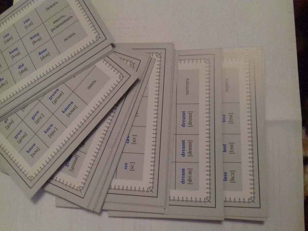 Карточки понравились, хорошо подходят для организации индивидуальной работы учеников - и для изучения, и для повторения неправильных глаголов. Спасибо!