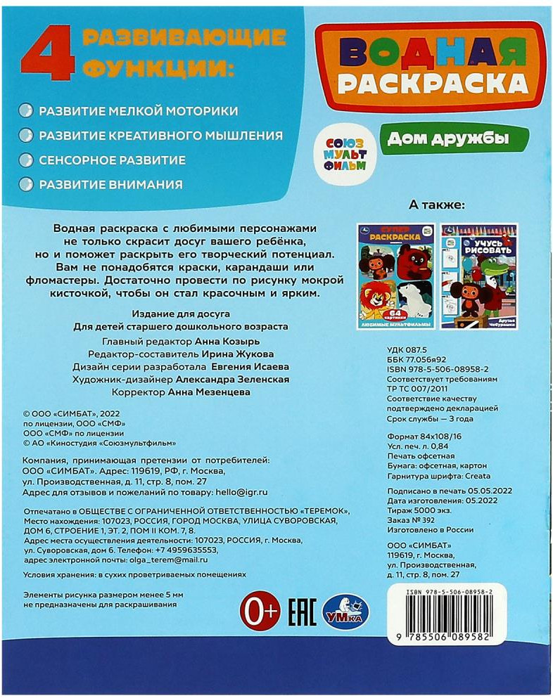 УМка Раскраска водная «Союзмультфильм. Чебурашка. Дом дружбы»-30% +25