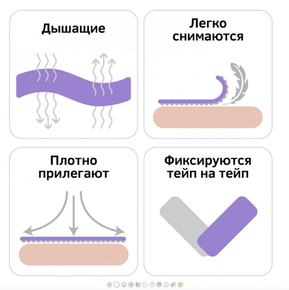 • Очень мягкое и комфортное удаление с кожи после использования, без необходимости применения дополнительных средств. Теперь процедура снятия тейпов наутро будет проходить легко и без лишних усилий!