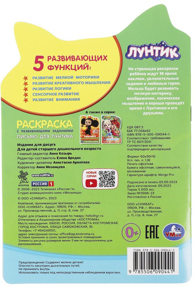 УМка Раскраска с наклейками «Письмо для Лунтика»-35% +6