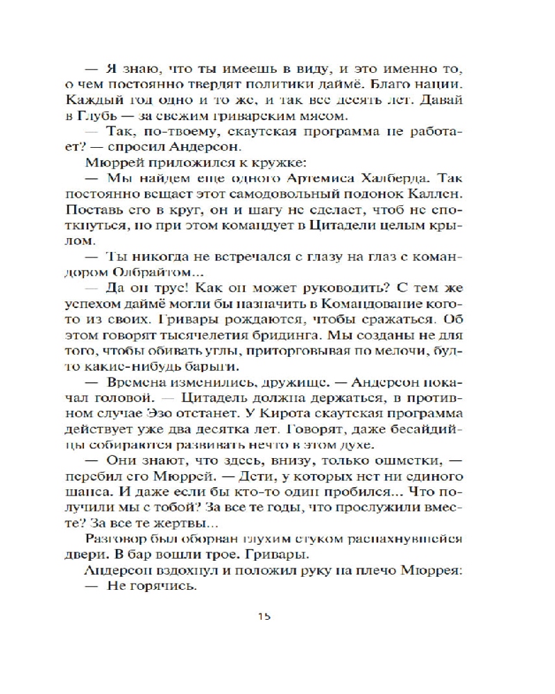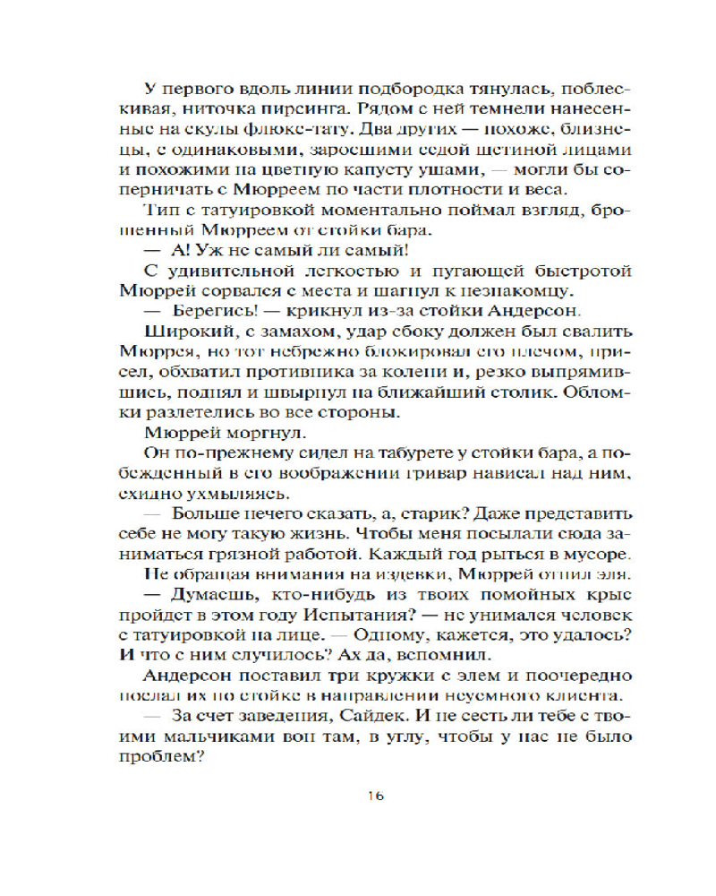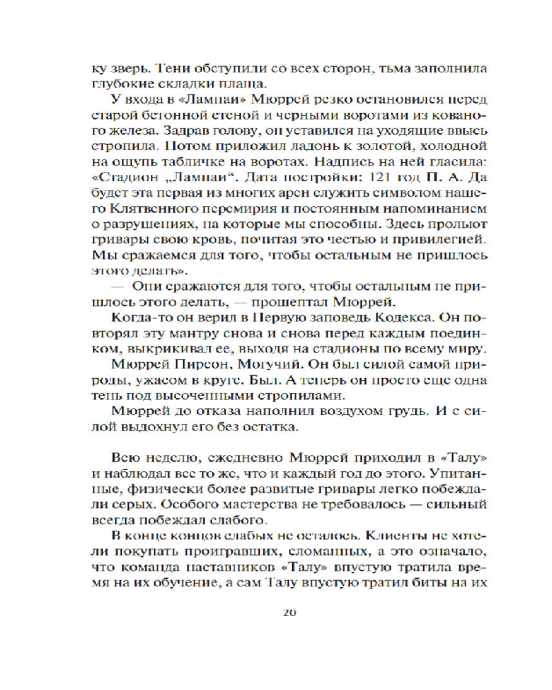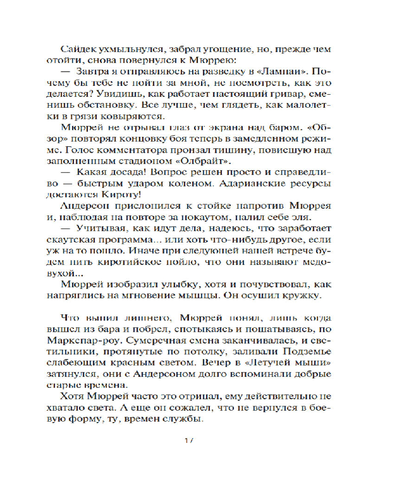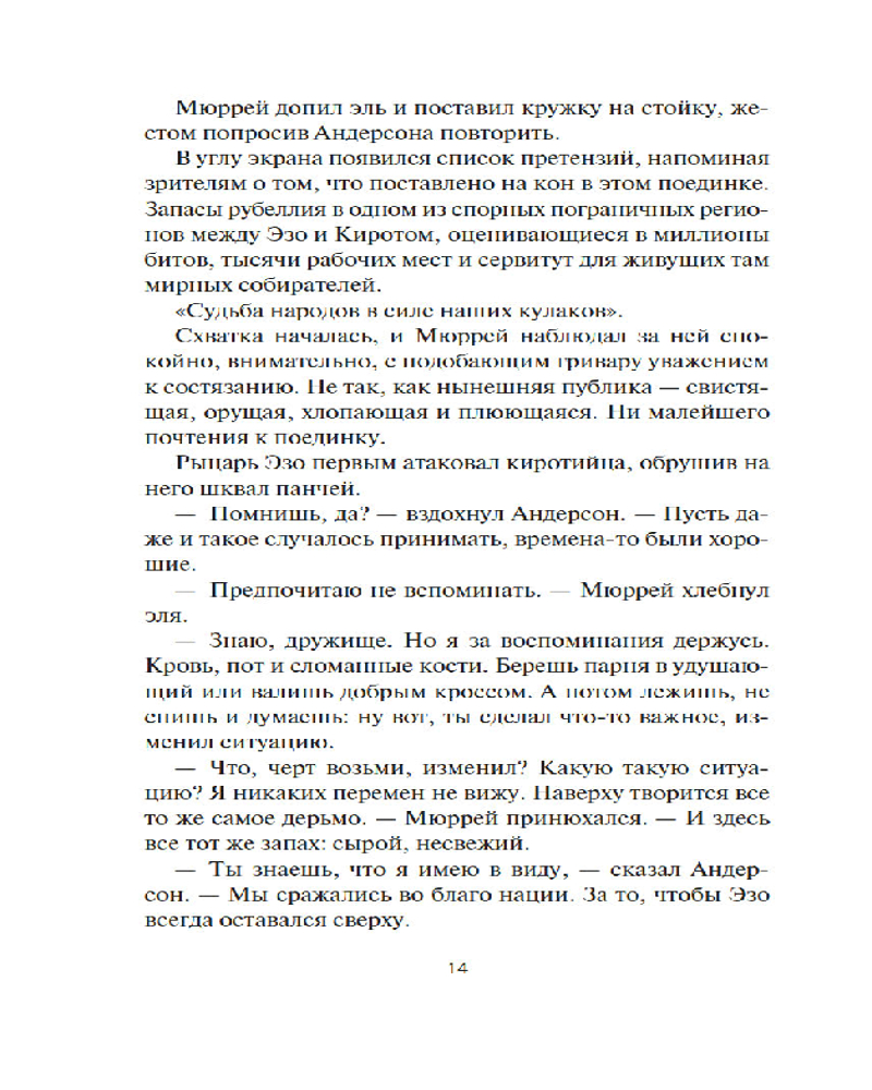 💳 Оплатить за товар можно при получении 🇰🇿 Есть бесплатная доставка по Казахстану от 1 дня 🎁 Копите бонусы с каждой покупки Серия: Звезды новой фантастики Столетия назад на истерзанной планете народы заключили Клятвенное перемирие, чтобы раз и навсегда покончить с войнами. Свои интересы они доверили отстаивать высокопрофессиональным бойцам, рыцарям-гриварам, в рукопашных поединках. Одним из этих прославленных рыцарей был Мюррей Пирсон. Был до того момента, когда проиграл бой, от которого зависела дальнейшая судьба его родины. Теперь он всего лишь скаут Цитадели, охотник за потенциальными чемпионами. В мрачных трущобах Подземья сражается на арене юный беспризорник по имени Сего. Мюррей верит, что этот подросток достоин поступления в Лицей, престижнейшее заведение, где лучшие мастера боевых искусств тренируют гриваров для грядущих подвигов. Но проблема в том, что Сего — невольник, а цена его свободы — победа в свирепых схватках, из которых нелегко выйти живым. Впервые на русском! |