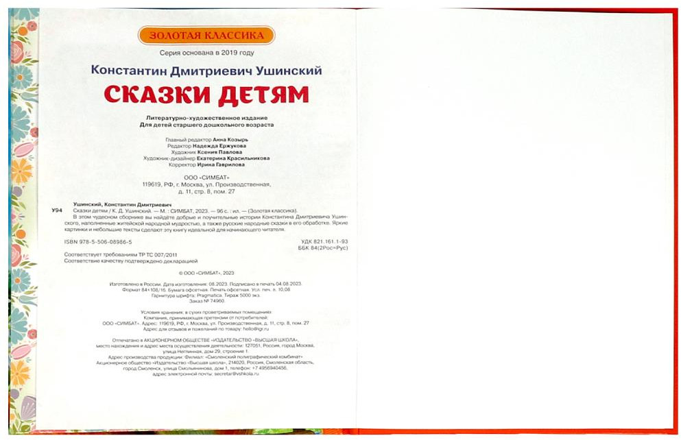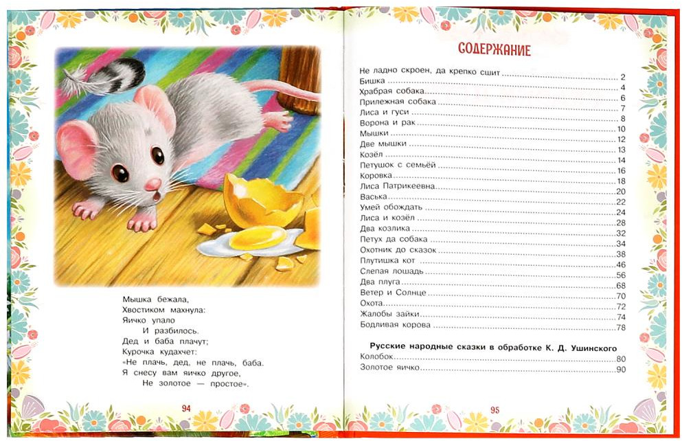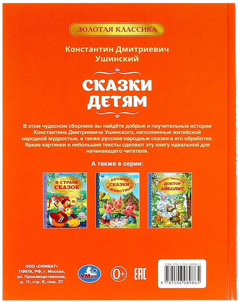 В сборник вошли произведения известного русского писателя Константина Дмитриевича Ушинского, наполненные житейской народной мудростью, а также русские народные сказки в его обработке. Красочные иллюстрации Ксении Павловой дополнят повествование и помогут привить ребёнку любовь к чтению.