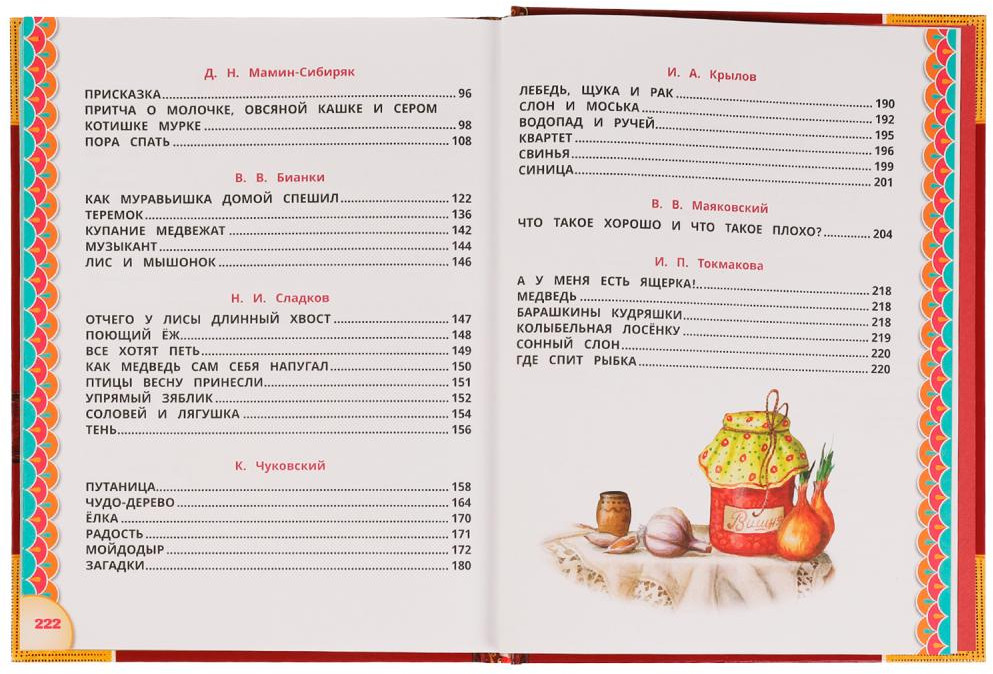 • сказки Д. Н. Мамина-Сибиряка: «Присказка», «Притча о Молочке, овсяной Кашке и сером котишке Мурке», «Пора спать»;