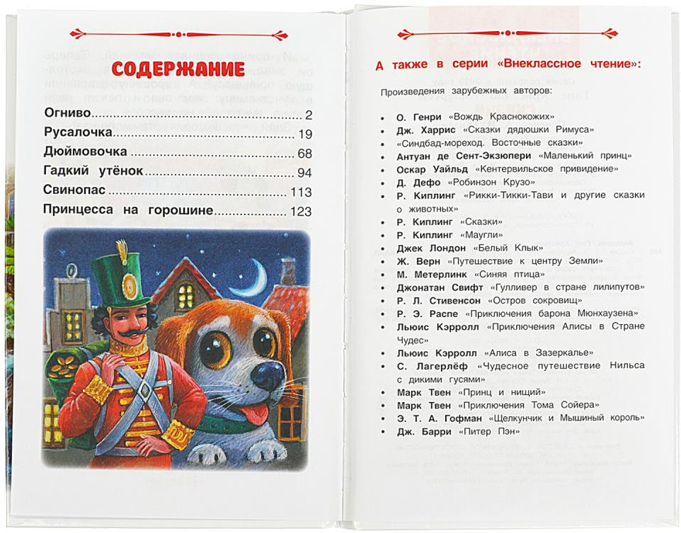 В данный момент этот товар отсутствует в продаже. Возможно, у нас найдется аналогичный или похожий товар здесь. Серия: Внеклассное чтение Книга «Г. Х. Андерсен. Сказки» из серии «Внеклассное чтение» — отличный вариант для самостоятельного чтения вне занятий в школе. В этот сборник вошли замечательные сказки Ганса Христиана Андерсена, которые читают и перечитывают взрослые и дети во всём мире. Юный читатель окунётся в мир чудес с любимыми героями, а красочные иллюстрации сделают процесс чтения ещё более увлекательным. Благодаря компактному размеру книгу удобно брать с собой в дорогу. Чтение книг из серии «Внеклассное чтение» расширяет кругозор и развивает: образное мышление, визуальное восприятие, внимание, память и речь.