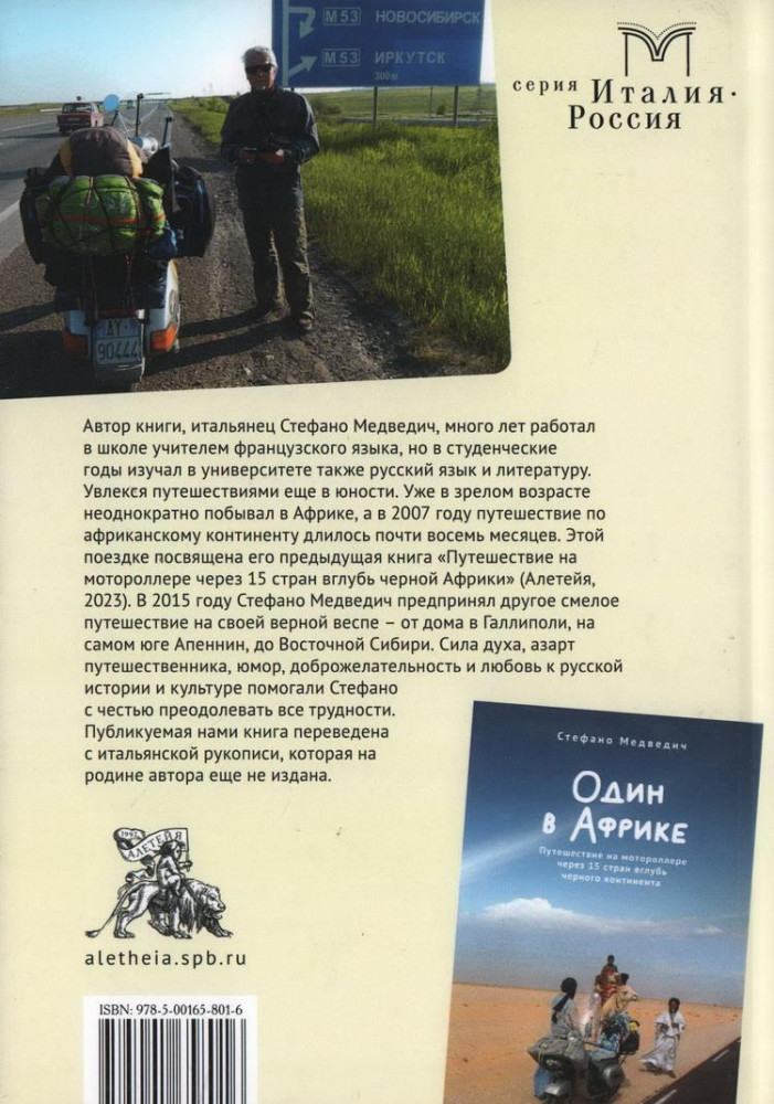 💳 Оплатить за товар можно при получении 🇰🇿 Есть бесплатная доставка по Казахстану от 1 дня 🎁 Копите бонусы с каждой покупки Серия: Италия-Россия Автор книги, итальянец Стефано Медведич, много лет работал в школе учителем французского языка, но в студенческие годы изучал в университете также русский язык и литературу. Увлекся путешествиями еще в юности. Уже в зрелом возрасте неоднократно побывал в Африке, а в 2007 году путешествие по африканскому континенту длилось почти восемь месяцев. Этой поездке посвящена его предыдущая книга «Путешествие на мотороллере через 15 стран вглубь черной Африки» (Алетейя, 2023). |