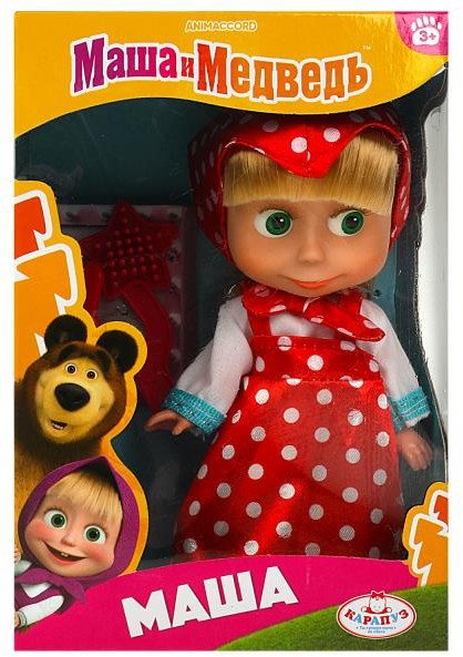 Карапуз Кукла «Маша»В данный момент этот товар отсутствует в продаже. Возможно, у нас найдется аналогичный или похожий товар здесь. Серия: Маша и Медведь Кукла «Маша» станет отличным подарком для маленьких поклонниц мультсериала «Маша и Медведь». Маша одета в красный сарафан в белый горох и белую рубашку. Образ куклы дополняет косынка на голове. Одежду легко снять и надеть. С Машей можно пойти на прогулку, путешествовать и, конечно, весело играть, делая все дела вместе. Для более интересной игры в наборе с Машей предусмотрены дополнительные аксессуары, которые помогут делать любимой кукле красивые причёски. |