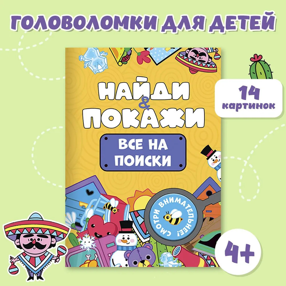 Найди и покажи. Все на поискиВ данный момент этот товар отсутствует в продаже. Возможно, у нас найдется аналогичный или похожий товар здесь. Серия: Найди и покажи Представляем новые сборники серии «Найди и покажи» с увлекательными заданиями на внимание. Проверьте себя! Смотрите в оба! |