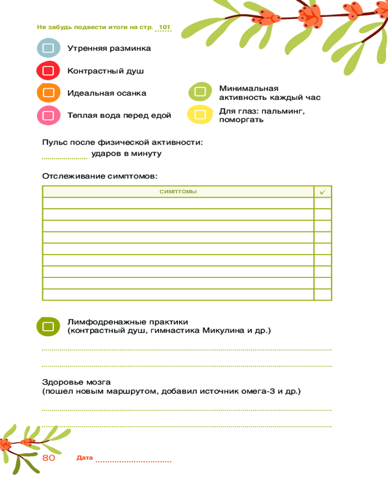 💳 Оплатить за товар можно при получении 🇰🇿 Есть бесплатная доставка по Казахстану от 1 дня 🎁 Копите бонусы с каждой покупки Серия: Код питания Дарья Савельева — нутрициолог, специалист по психологической коррекции пищевого поведения, эксперт телеканала «Доктор», официальный эксперт «Одноклассников» по здоровому образу жизни. Входит в ТОП-50 среди всех блогов платформы Дзен по результатам независимых рейтингов. Первый трекер полезных привычек от автора бестселлеров «Осознанное питание», «Осознанная кулинария» и «15 шагов к ментальному и физическому здоровью», основанный на уникальной системе Дарьи Савельевой. |