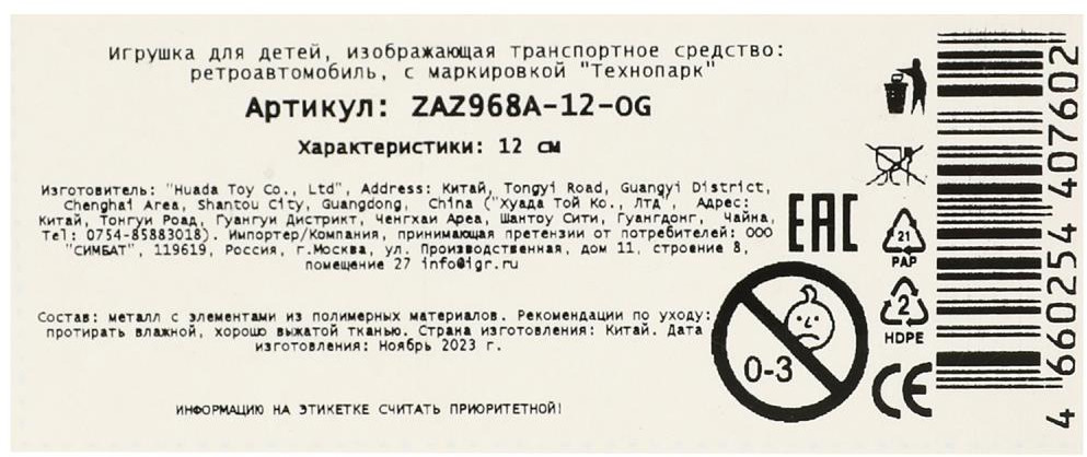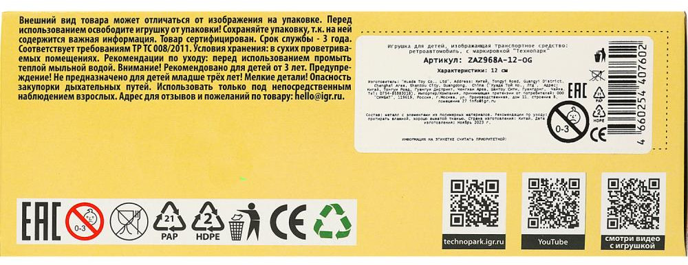 Технопарк Машина инерционная «Ретроавтомобиль»