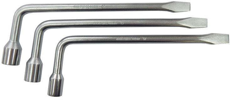 Инструмент используется для монтажа и демонтажа резьбовых соединений при замене автомобильных колес, а также для выполнения работ по снятию покрышки с диска. Ключ представляет он собой изогнутый стержень: с одной стороны на нем расположена стандартная шестигранная головка, а с другой — плоская лопатка (она предназначена для прикладывания усилия ногой). Его отличает простота конструкции и высокая прочность. Также стоит отметить, что такие изделия отличаются устойчивостью к высоким нагрузкам — его часто используют с рычагами и применением ударной нагрузки.