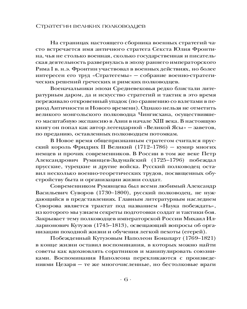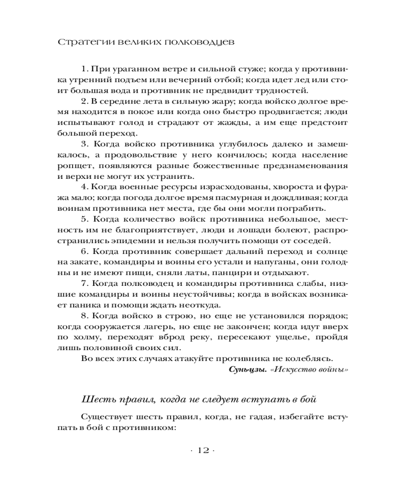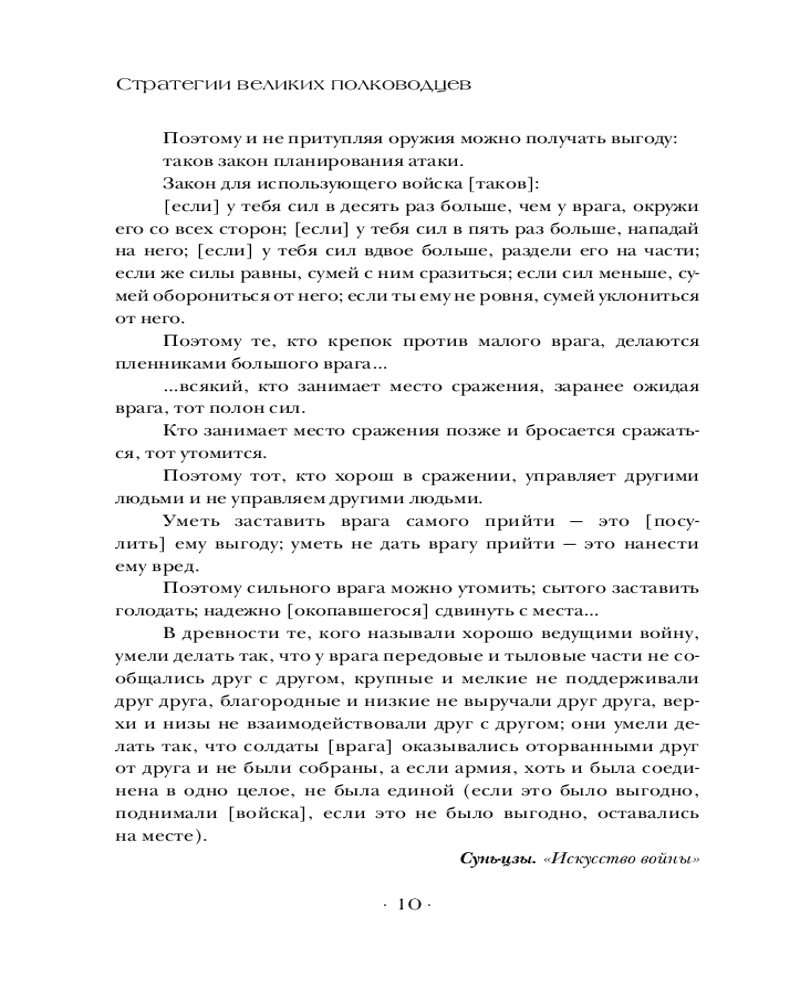 💳 Оплатить за товар можно при получении 🇰🇿 Есть бесплатная доставка по Казахстану от 1 дня 🎁 Копите бонусы с каждой покупки Серия: Власть: искусство править миром В этой книге собраны самые знаменитые военные стратегии, произнесенные или записанные великими полководцами и философами. Теоретики и практики военного дела оставили для потомков бесценные правила, позволяющие применить стратегию и тактику не только в реальном сражении, но и в бизнесе или решении конфликта. Книга поможет прикоснуться к универсальным принципам жизни и сориентироваться в сложных ситуациях современного мира. Издание будет интересно как истинным любителям военной истории, так и всем, кто хочет мыслить стратегически в повседневной жизни. |