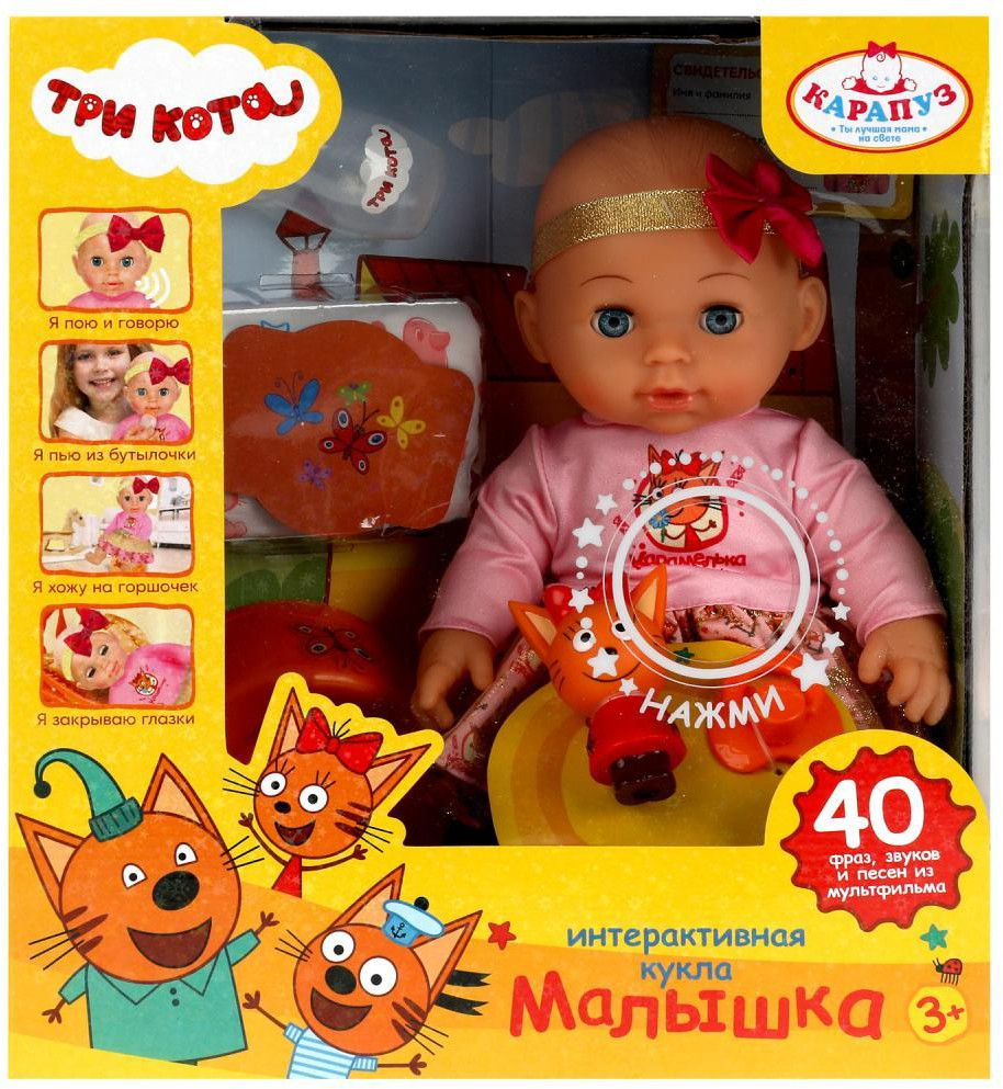 💳 Оплатить за товар можно при получении 🇰🇿 Есть бесплатная доставка по Казахстану от 1 дня 🎁 Копите бонусы с каждой покупки Развивающая интерактивная кукла «Три кота. Малышка» ТМ «Карапуз» станет прекрасным подарком для вашей принцессы: |