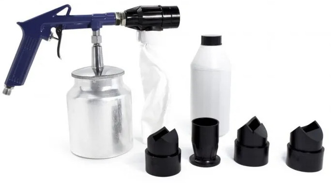Пескоструйный пневматический пистолет со сменными насадками Forsage F-2377 предназначен для удаления загрязнений, коррозии, а также старой краски с металлических поверхностей. Модель имеет бачок для абразива емкостью 1 литр. Крючок позволяет удобно хранить пистолет в подвешенном состоянии.
