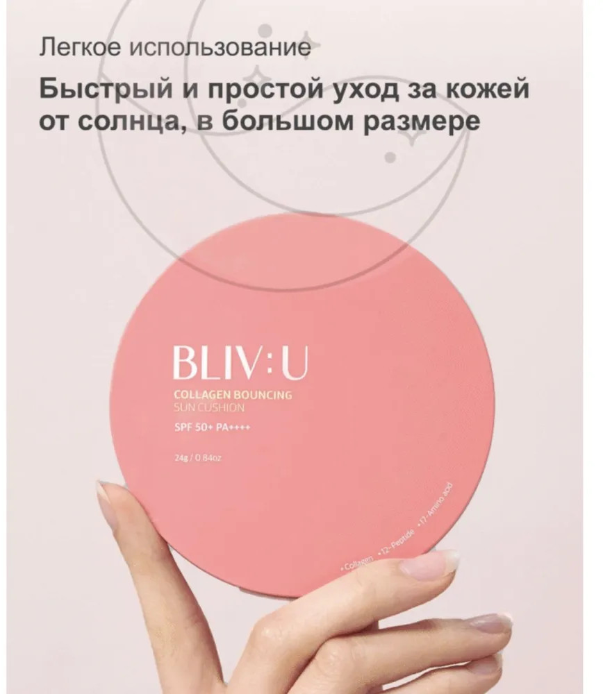 BLIV:U Кушон для лица «Collagen Bouncing Sun Cushion» SPF50/PA++++В данный момент этот товар отсутствует в продаже. Возможно, у нас найдется аналогичный или похожий товар здесь. Коллагеновый солнцезащитный кушон «BLIV:U» «Collagen Bouncing Sun Cushion SPF50+ PA++++» на 47% состоит из концентрированной эссенции для глубокого увлажнения и повышения эластичности кожи. Мгновенно выравнивает тон и улучшает цвет лица, скрывает покраснения и мелкие несовершенства. Комбинация физических и химических фильтров нового поколения надёжно защищает от разрушающего воздействия ультрафиолета и блокирует синтез меланоцитов. Содержит комплекс аминокислот и пептидов, гидролизованный коллаген и эластин, пробиотики и аденозин. |