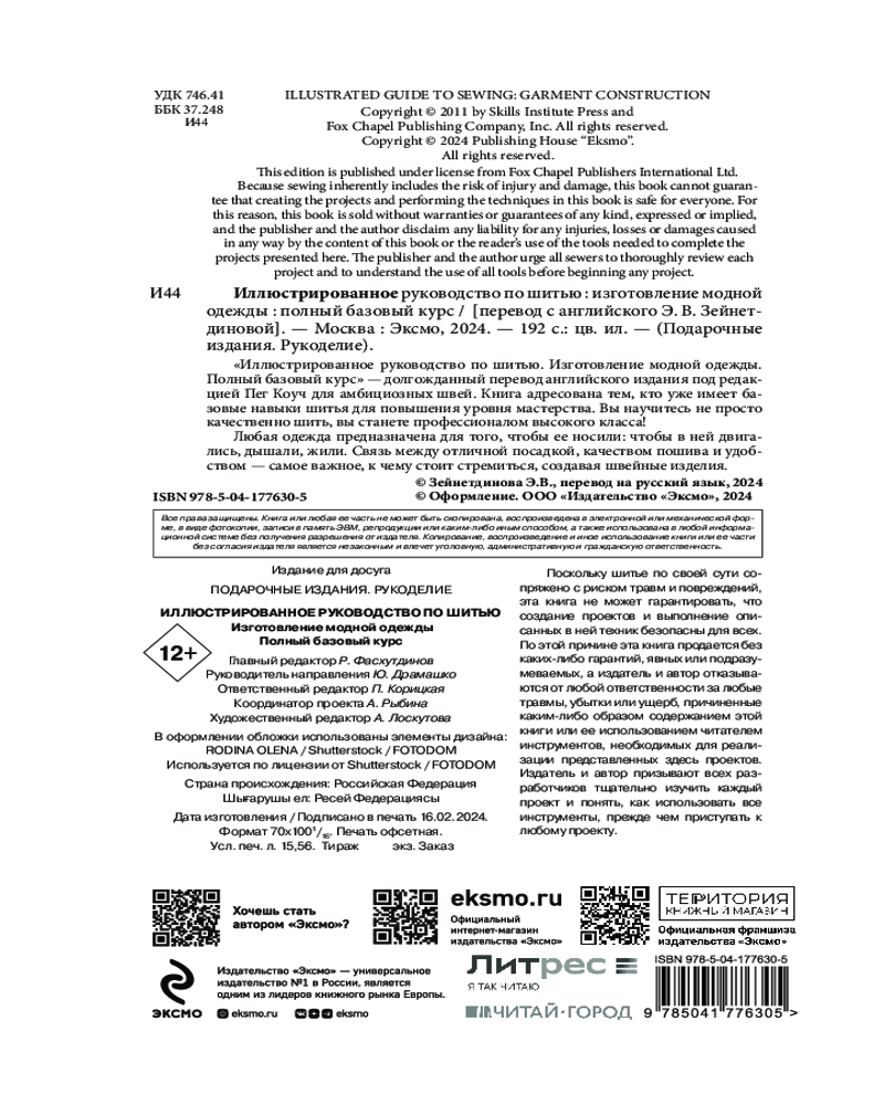 💳 Оплатить за товар можно при получении 🇰🇿 Есть бесплатная доставка по Казахстану от 1 дня 🎁 Копите бонусы с каждой покупки Серия: Мировой бестселлер рукоделия. Шитье «Иллюстрированное руководство по шитью. Изготовление модной одежды. Полный базовый курс» — долгожданный перевод английского издания под редакцией Пег Коуч для амбициозных швей. Книга адресована тем, кто уже имеет базовые навыки шитья для повышения уровня мастерства. Вы научитесь не просто качественно шить, вы станете профессионалом высокого класса! Любая одежда предназначена для того, чтобы ее носили: чтобы в ней двигались, дышали, жили. Связь между отличной посадкой, качеством пошива и удобством — самое важное, к чему стоит стремиться, создавая швейные изделия. |