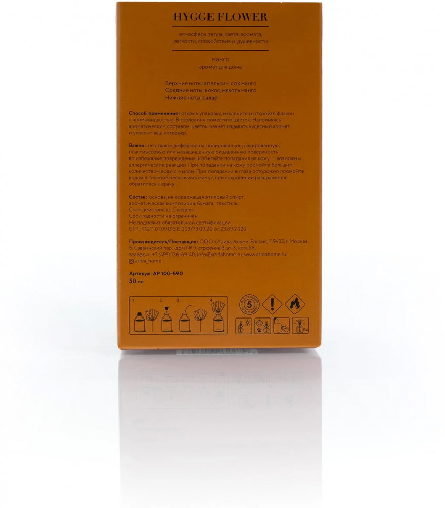 В переводе с датского понятие хюгге означает чувство уюта и комфортного общения с ощущением благополучия и удовлетворённости. Майкл Викинг, основатель Института исследования счастья даёт 8 советов достижения хюгге, и самым первым идёт — сделать уютным место своего пребывания. Не важно, дом это или офис! Hygge Flower #6 Манго поможет создать атмосферу хюгге в Вашем доме! По праву ассоциируется с отдыхом в жарких странах. С доминирующей нотой манго, даже ливень за окном покажется тропическим. «Райское наслаждение» вполне могло бы быть названием этого аромата. Стильный дизайн этого модного ароматического аксессуара украсит любой интерьер.