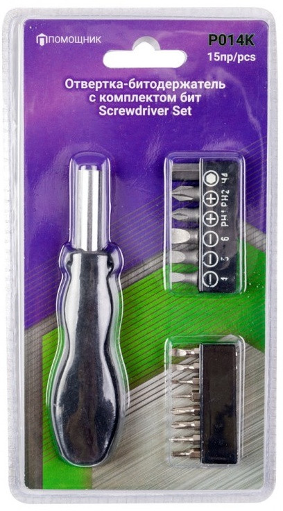 Помощник Отвертка-битодержатель c комплектом битВ данный момент этот товар отсутствует в продаже. Возможно, у нас найдется аналогичный или похожий товар здесь. Набор инструментов 15 предметов, в блистере от бренда Помощник – это ручной слесарный и столярный монтажный инструмент, разработанный для выполнения различных строительных и монтажных работ в доме и гараже. |