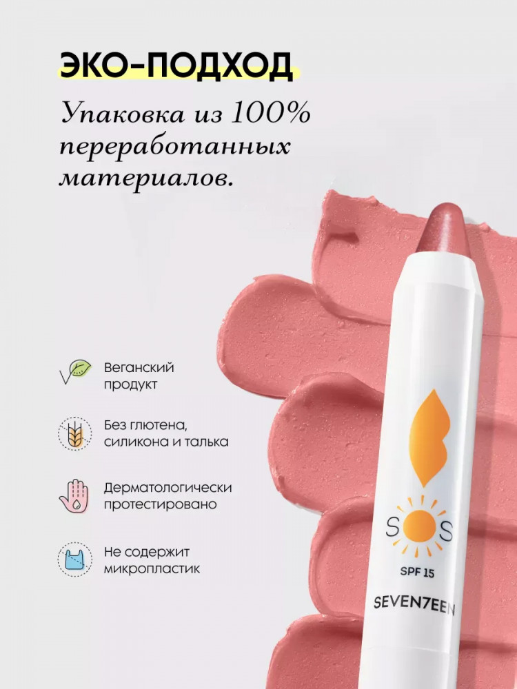 SEVEN7EEN Бальзам для губ увлажняющий «SOS Lip Repair» SPF15, тон 02 Прозрачный чайный