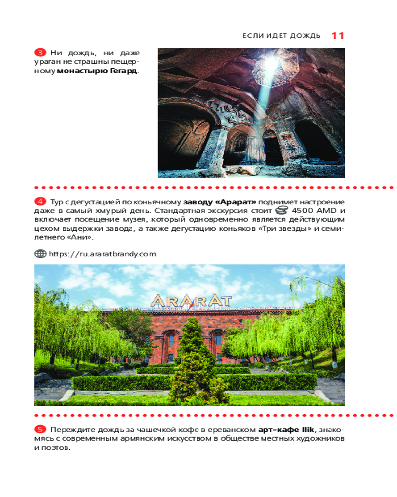 💳 Оплатить за товар можно при получении 🇰🇿 Есть бесплатная доставка по Казахстану от 1 дня 🎁 Копите бонусы с каждой покупки Серия: Оранжевый гид (обложка) Богатая культура, древние города и монастыри, сложная история, вкусное вино и удивительной красоты природа — все это Армения! Отправляйтесь в незабываемое путешествие по стране вместе с нашим Оранжевым гидом! В нем содержится актуальная и полезная информация о главных городах страны, различные маршруты на любой вкус, подсказки, что делать, если идет дождь, или где искать лучшие смотровые площадки, а также множество полезных авторских советов. Посетите озеро Севан, отправьтесь к подножью Арарата к монастырю Хор Вирап или исследуйте город Гюмри — выбор только за вами! |