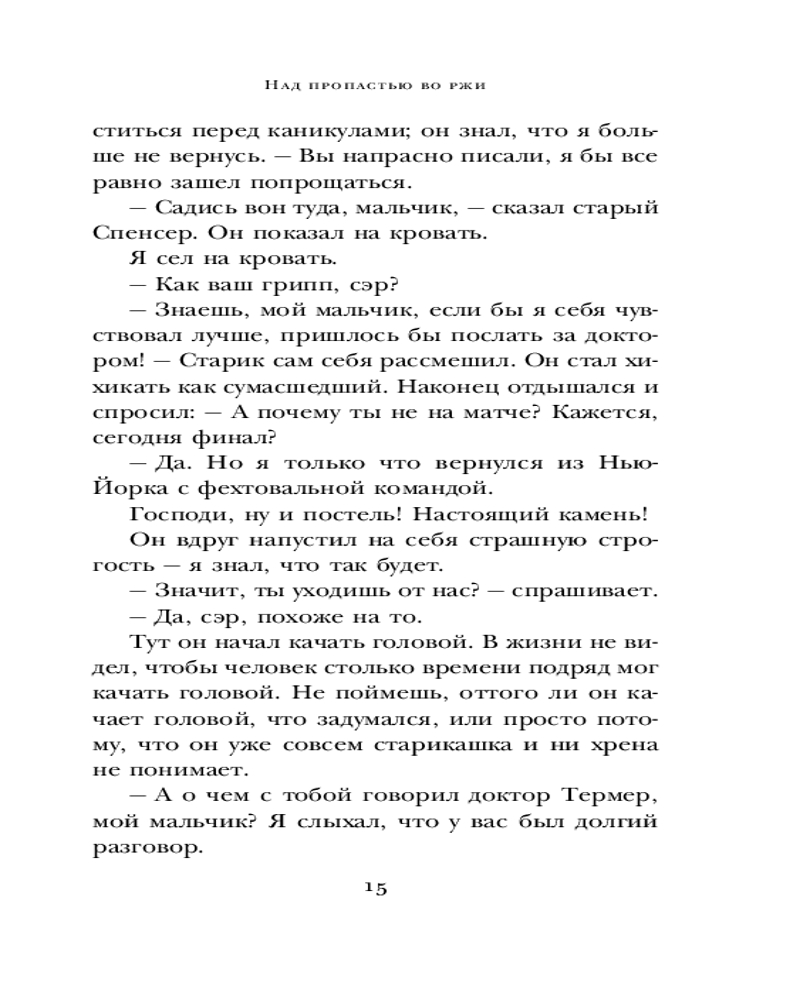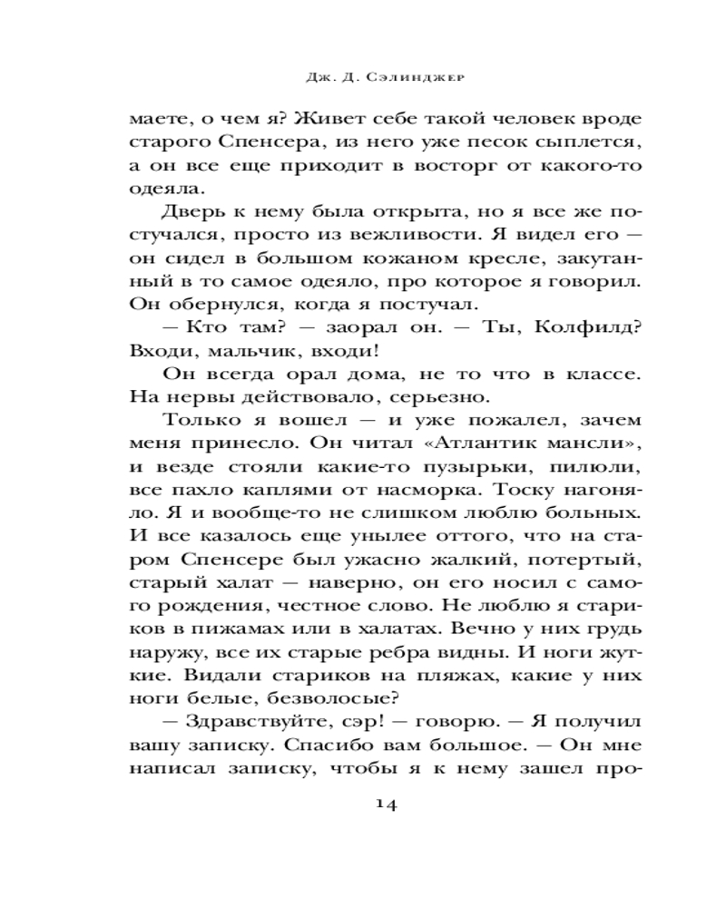 Над пропастью во ржиВ данный момент этот товар отсутствует в продаже. Возможно, у нас найдется аналогичный или похожий товар здесь. Серия: Яркие страницы. Коллекция Дж. Д. Сэлинджера Мальчика зовут Холден Колфилд, и живет он в повести «Над пропастью во ржи», до сих пор боготворимой миллионами «непонятых» подростков. Холден наделен «абсолютным нравственным слухом» — он мгновенно различает фальшь, с него словно содрана кожа, обнажены нервные окончания, его сверхчувствительность — особого рода радар, улавливающий то, мимо чего спокойно проходят другие. Но он не ангел и не «дитя цветов», а трудный подросток во всей красе: со своими переживаниями, волнениями и талантами, но и со всеми тараканами тоже. Но у Холдена есть еще и странная, но очень трогательная мечта... |