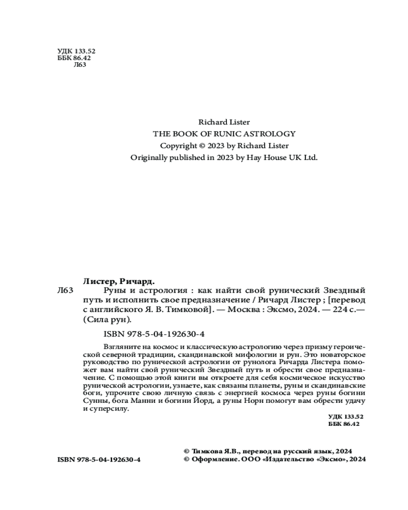 💳 Оплатить за товар можно при получении 🇰🇿 Есть бесплатная доставка по Казахстану от 1 дня 🎁 Копите бонусы с каждой покупки Серия: Сила рун Взгляните на космос и классическую астрологию через призму героической северной традиции и скандинавских рун и обретите свое предназначение с помощью этого руководства по рунической астрологии от рунолога Ричарда Листера! |