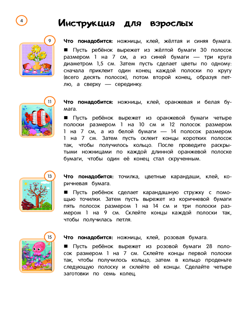 💳 Оплатить за товар можно при получении 🇰🇿 Есть бесплатная доставка по Казахстану от 1 дня 🎁 Копите бонусы с каждой покупки Серия: Аппликации-вырезалки для дошколят Аппликация-вырезалка поможет ребёнку развить творческие способности и станет хорошей альтернативой гаджетам. Благодаря интересным сюжетам и постепенно усложняющимся заданиям ребёнок разовьёт мелкую моторику, логическое и пространственное мышление, фантазию, внимание, воображение, подготовит руку к письму, расширит словарный запас и кругозор. Кроме того, занимаясь, ребёнок научится пользоваться ножницами и клеем. Все эти навыки помогут малышу почувствовать уверенность в своих силах, ведь ситуация успеха очень важна в обучении ребёнка. Пособие содержит заготовки для 20 творческих занятий. С помощью готовых шаблонов можно провести с малышом увлекательные занятия по классической аппликации, а также с нестандартными материалами (нитки, макароны, салфетки, ватные палочки, фрукты). Каждый шаблон содержит основу для поделки, текст задания для ребёнка, инструкцию для взрослых (что понадобится, как выполнять, на что обратить внимание малыша), а также пример выполненного задания. В конце книги ребёнка ожидает сюрприз — диплом за старание и выполнение всех заданий. |