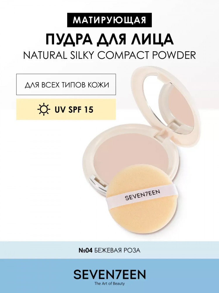 SEVEN7EEN Natural Silky Compact Powder Компактная шелковая пудра для лица SPF 15, оттенок 04 Бежевая роза