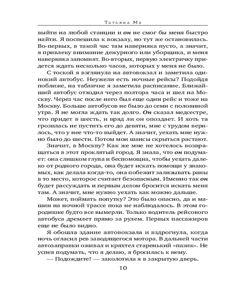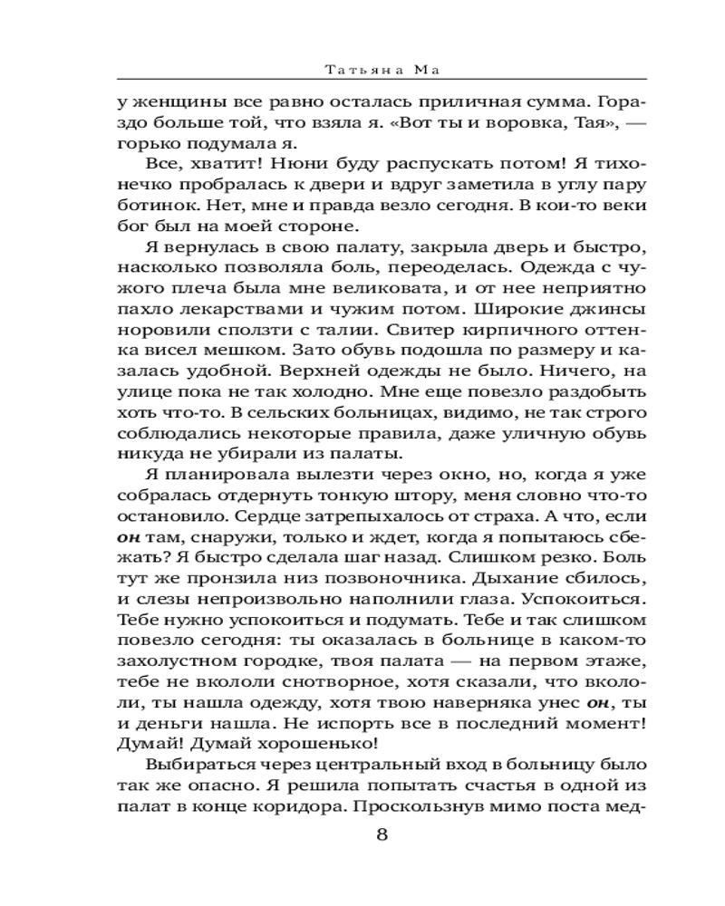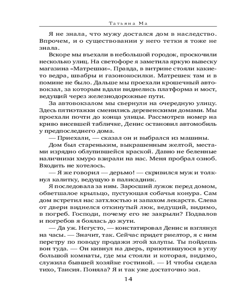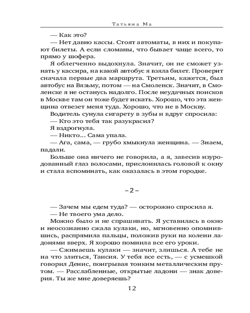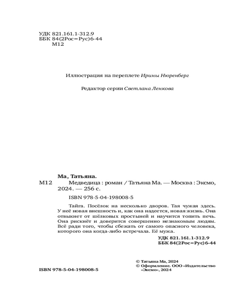 Серия: Сентиментальные триллеры Татьяны Ма Тайга. Посёлок на несколько дворов. Тая чужая здесь. У неё новая внешность и, как она надеется, новая жизнь. Она отвыкнет от шёлковых простыней и научится топить печь. Она рискнёт и доверится совершенно незнакомым людям. Всё ради того, чтобы сбежать от самого опасного человека, которого она когда-либо встречала. Её мужа. |