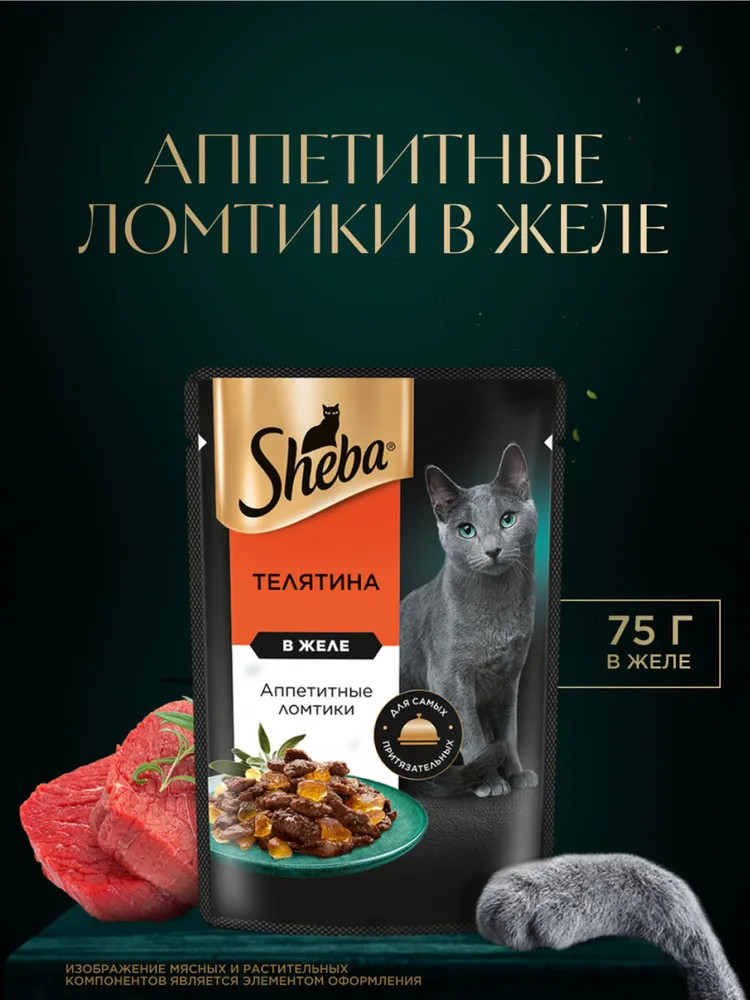 Sheba Набор паучей для кошек «Ломтики в желе с телятиной»