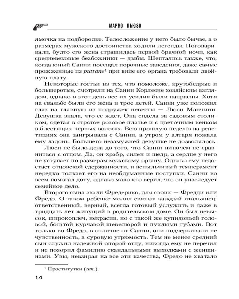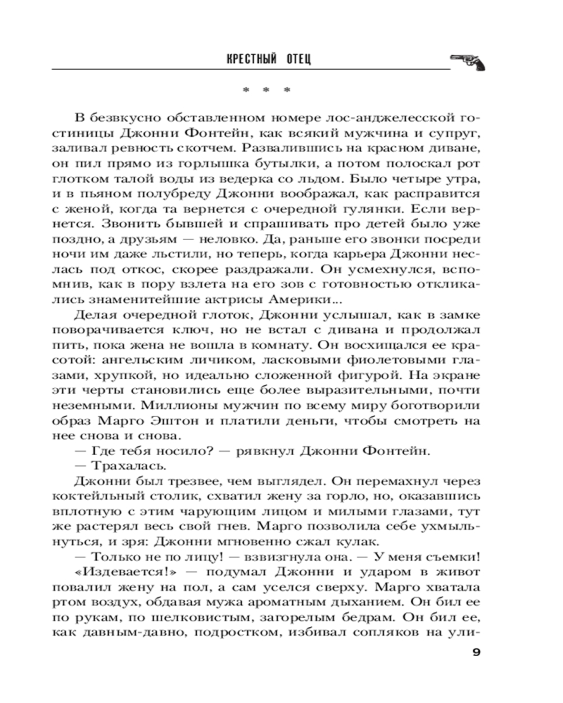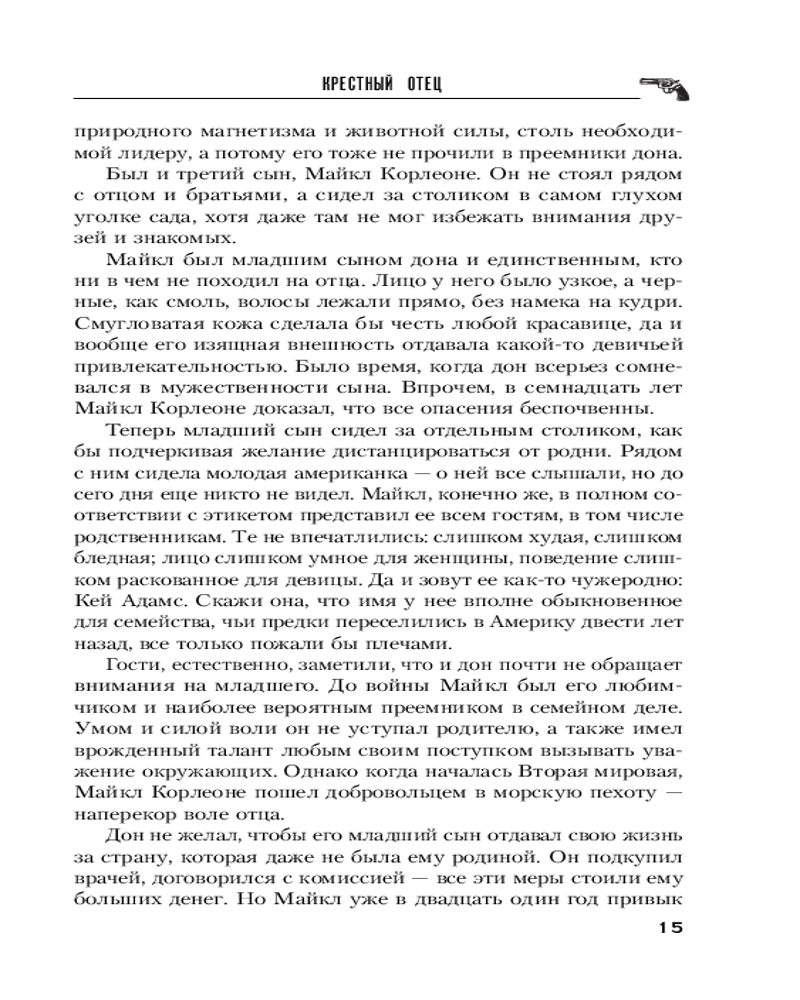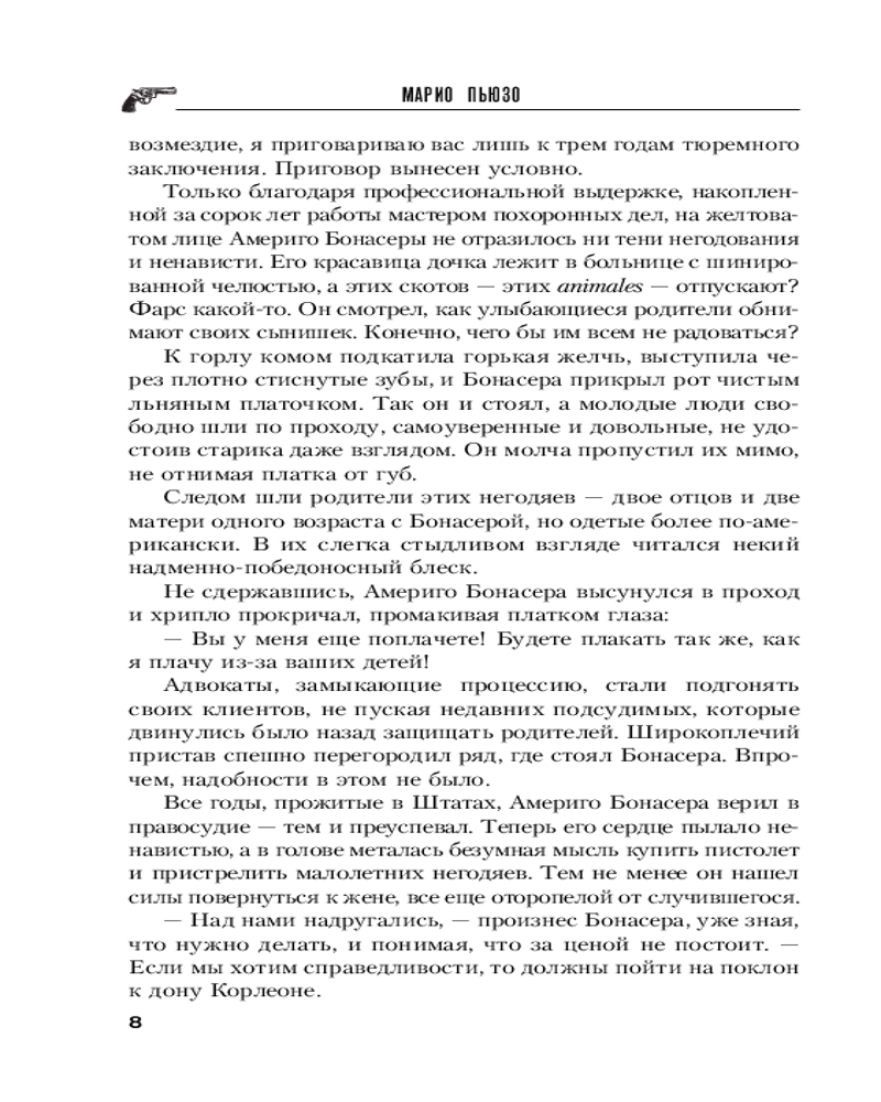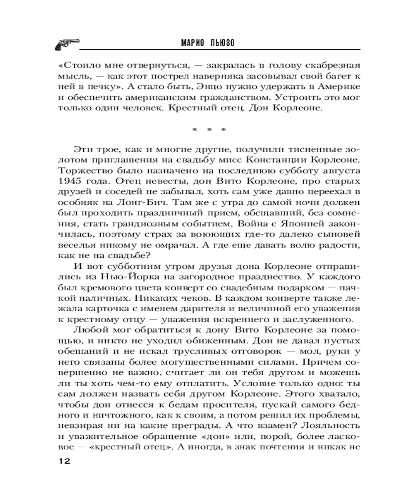 Крёстный отецВ данный момент этот товар отсутствует в продаже. Возможно, у нас найдется аналогичный или похожий товар здесь. Серия: Марио Пьюзо. От автора "Крестного отца" Клан Корлеоне — могущественнейший во всей Америке. Для общества они торговцы маслом, а на деле сфера их влияния куда больше. Единственное, чем не хочет марать руки дон Корлеоне, — наркотики. Его отказ сильно задевает остальные семьи. Такое стареющему дону простить не могут. Начинается длительная война между кланами. Еще живо понятие родовой мести, поэтому остановить бойню можно, лишь пойдя на рискованный шаг. До перемирия доживут немногие, но даже это не сможет помочь им избежать возмездия за старые грехи... |