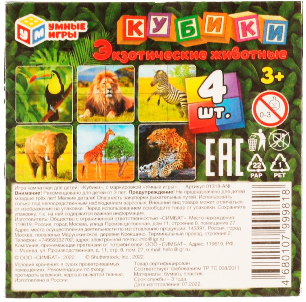 Умные игры Набор кубиков «Экзотические животные»-30% +20