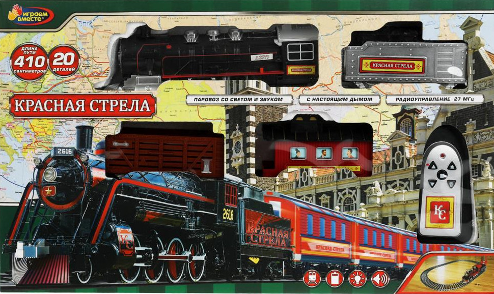 Играем вместе Железная дорога на инфракрасном управлении «Красная стрела»В данный момент этот товар отсутствует в продаже. Возможно, у нас найдется аналогичный или похожий товар здесь. Железная дорога на инфракрасном управлении «Красная стрела» ТМ «Играем вместе» — отличный подарок для маленького любителя железнодорожного транспорта |