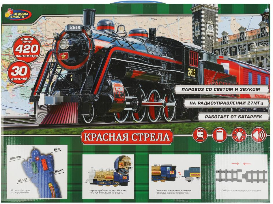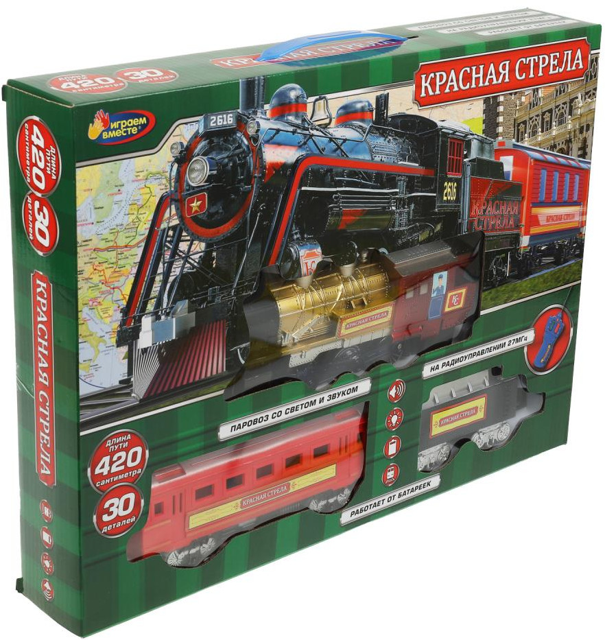 Играем вместе Железная дорога «Красная стрела»В данный момент этот товар отсутствует в продаже. Возможно, у нас найдется аналогичный или похожий товар здесь. Железная дорога «Красная стрела» ТМ «Играем вместе» станет отличным подарком для ребёнка. |