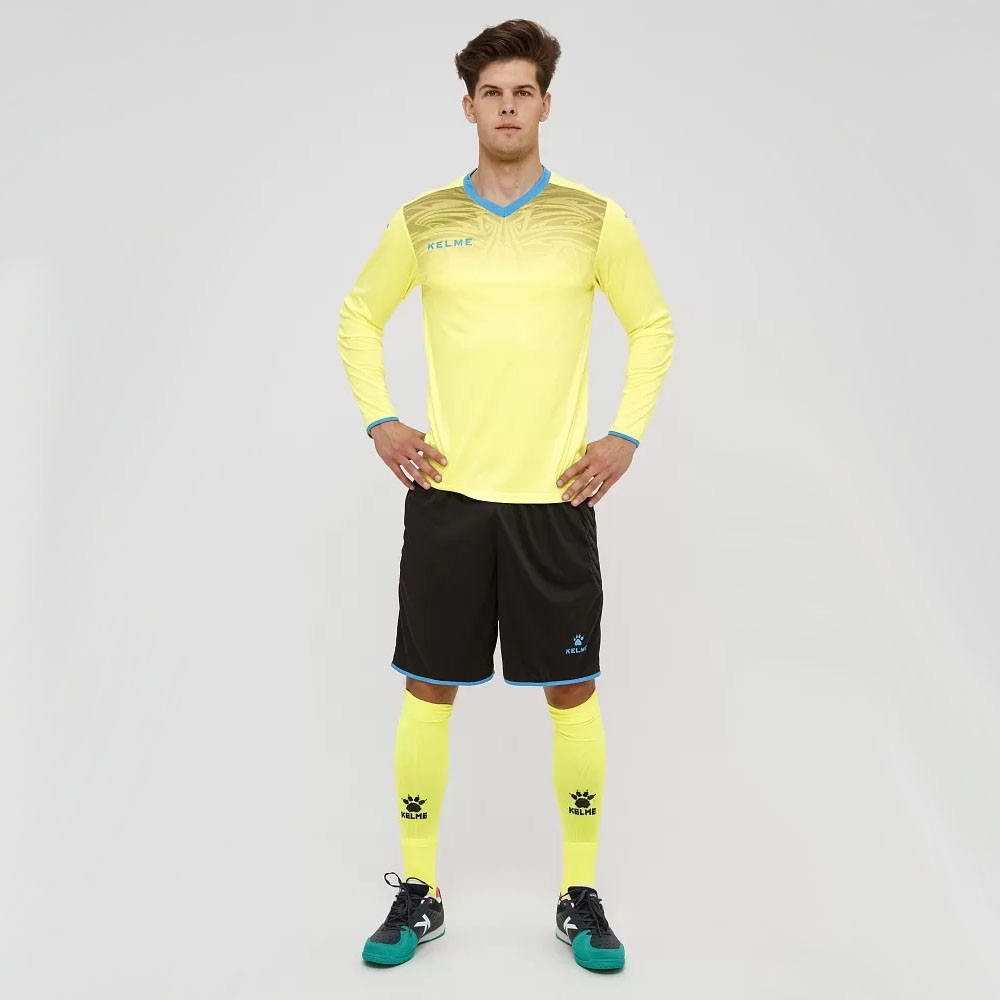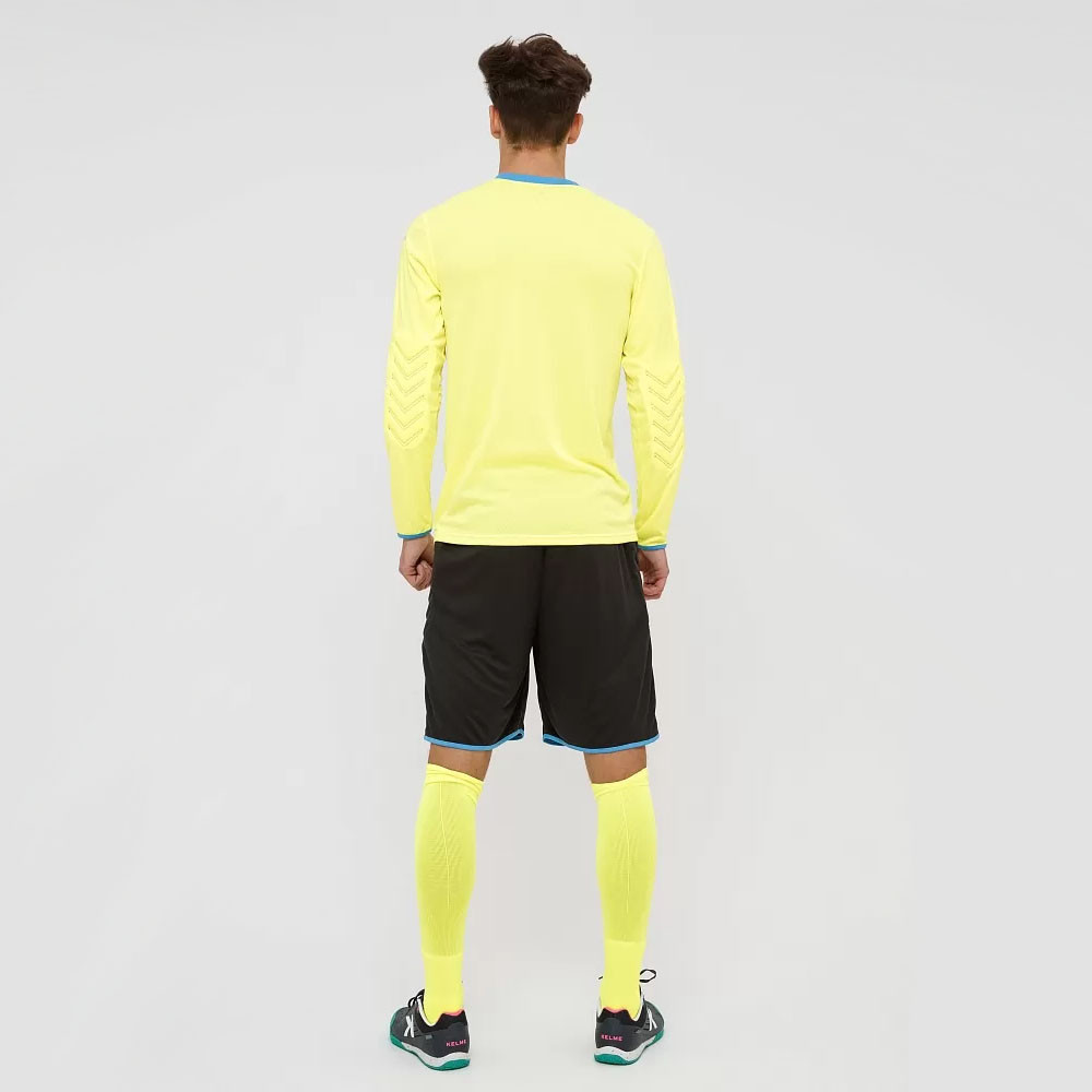 Комплект вратарской формы Kelme состоит из лонгслива и шорт. Лонгслив выполнен из легкого и эластичного полиэстера. На локтях расположены сегментированные панели, выполненные из вспененного материала, защищающие локтевые суставы при падениях. Для максимальной воздухопроницаемости спинка лонгслива выполнена из сетчатого материала. Удобный V-образный ворот не будет давить в зону яремной ямки и доставлять дискомфорт во время игры. Шорты с вставками из вспененного материала, которые расположены по бокам бедер, смягчают удары при падениях. Широкий пояс на резинке с дополнительной шнуровкой. Благодаря стойкости к сминанию и особым свойствам ткани, форма легко сохраняет первоначальные размеры и прекрасный внешний вид, а также обеспечивает комфорт на протяжении всей игры. Воздухопроницаемый материал обладает отличными влагоотводящими свойствами.