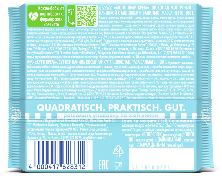 Ritter Sport Шоколад молочный «Молочный крем»