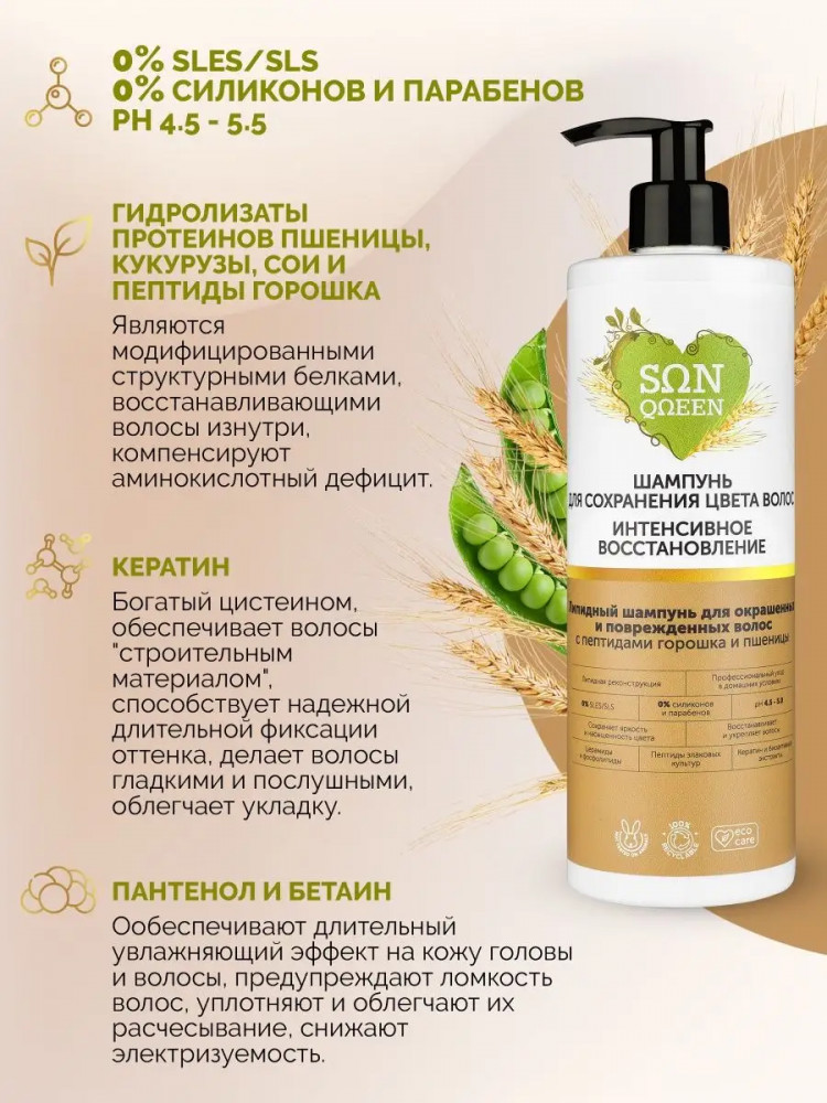 Sunqueen Шампунь бессульфатный для сохранения цвета окрашенных и поврежденных волос