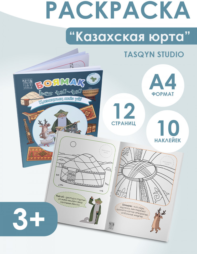 💳 Оплатить за товар можно при получении 🇰🇿 Есть бесплатная доставка по Казахстану от 1 дня 🎁 Копите бонусы с каждой покупки Раскраска Боямақ «Қазақтың киіз үйі». |