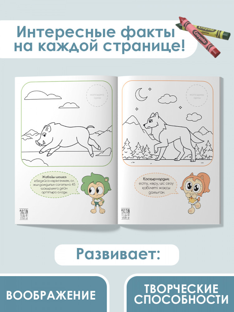 💳 Оплатить за товар можно при получении 🇰🇿 Есть бесплатная доставка по Казахстану от 1 дня 🎁 Копите бонусы с каждой покупки Раскраска Боямақ «Қазақстанның ірі жануарлары». |