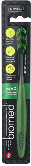 Biomed Зубная щетка комплексная «MAX»-20% +33 скруглённые концы много щетинок средняя жесткость приятный пластик крупная головка