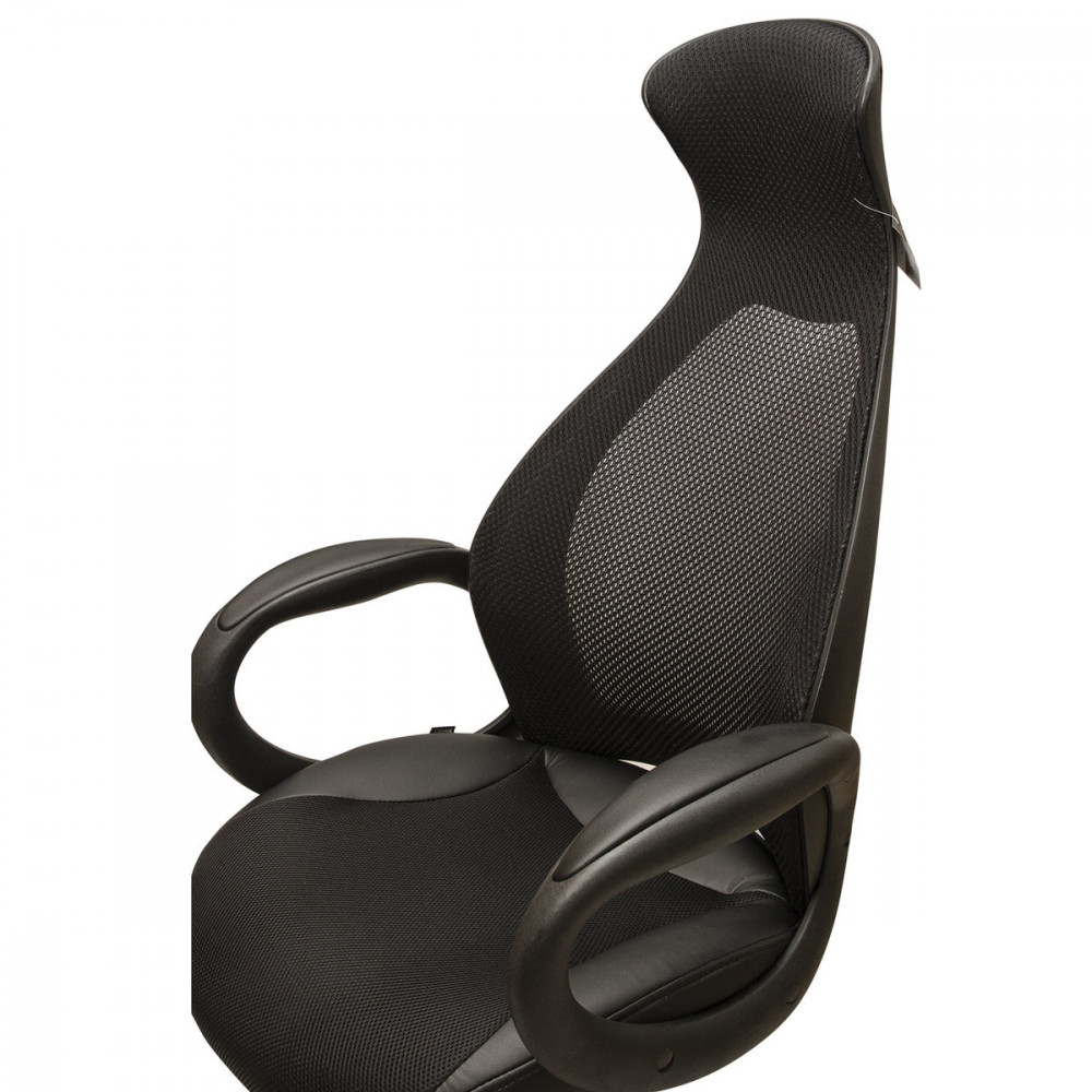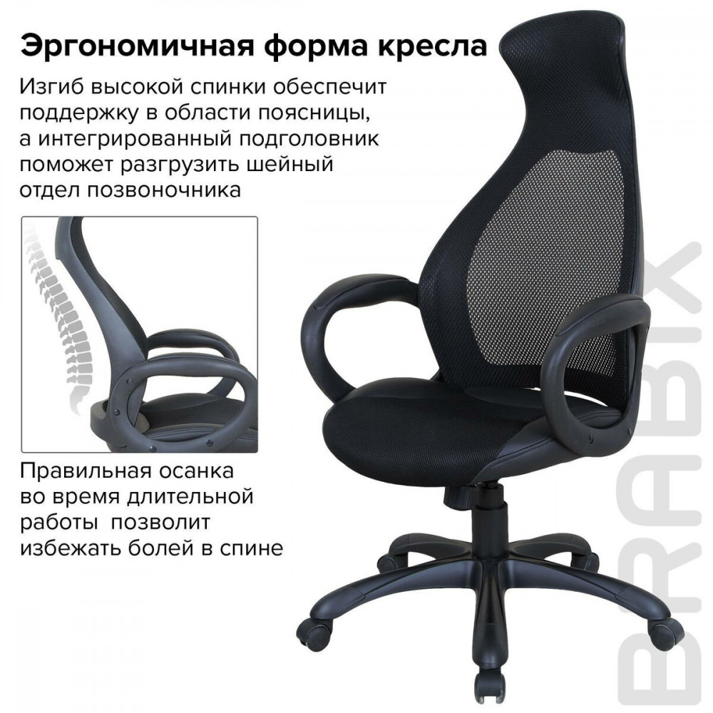 Эргономика кресла выдержана на качественном уровне: высокая спинка с интегрированным подголовником, сетчатая спинка, поддерживающая поясницу, сиденье средней жесткости, широкие подлокотники с противоскользящими вставками.
