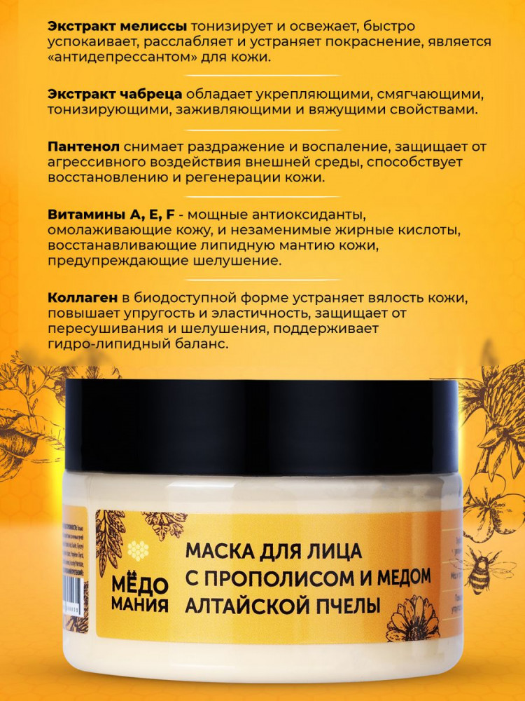 Sunqueen Маска для лица омолаживающая с прополисомВ данный момент этот товар отсутствует в продаже. Возможно, у нас найдется аналогичный или похожий товар здесь. Серия: МедоМания Омолаживающая маска с коллагеном для лица с прополисом и медом алтайской пчелы. Ваша кожа станет молодой, здоровой, сияющей и упругой. Бережно воздействует на кожу лица, очищая, увлажняя и питая. Подходит для всех типов кожи! Для сухой , жирной , комбинированной , проблемной кожи. Для женщин и для мужчин. Гипоаллергенный состав маски не вызывает раздражения, зуда или покраснения. Экстракт меда увлажняет, питает и смягчает кожу, оказывает регенерирующее омолаживающее действие и борется с возрастными изменениями, снижает образование мимических морщин, блокирует воспаления, приводящие к преждевременному старению. Витамины А Е F нормализуют обменные процессы, способствуют сужению пор, борются с морщинами и шелушением. Интенсивно тонизируют и освежают, нормализуют клеточный обмен, имеют антибактериальный эффект, ускоряют регенерацию, обеспечивают тонус, усиливают кровообращение и обменные процессы. Экстракт прополиса и пантенол имеют противовоспалительное действие, снимает раздражения, зуд и покраснения, способствуют восстановлению и регенерации кожи. |