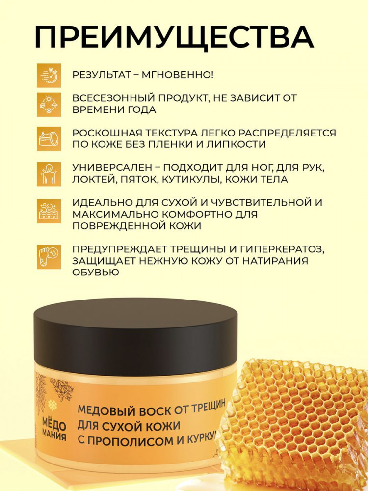 Очень понравилась бережный подход к природе, упаковка с напоминанием о переработке. Особенно зайчик на коробке покорил сердце. Воск успокаивает и хорошо увлажняет кожу ног,я довольна.