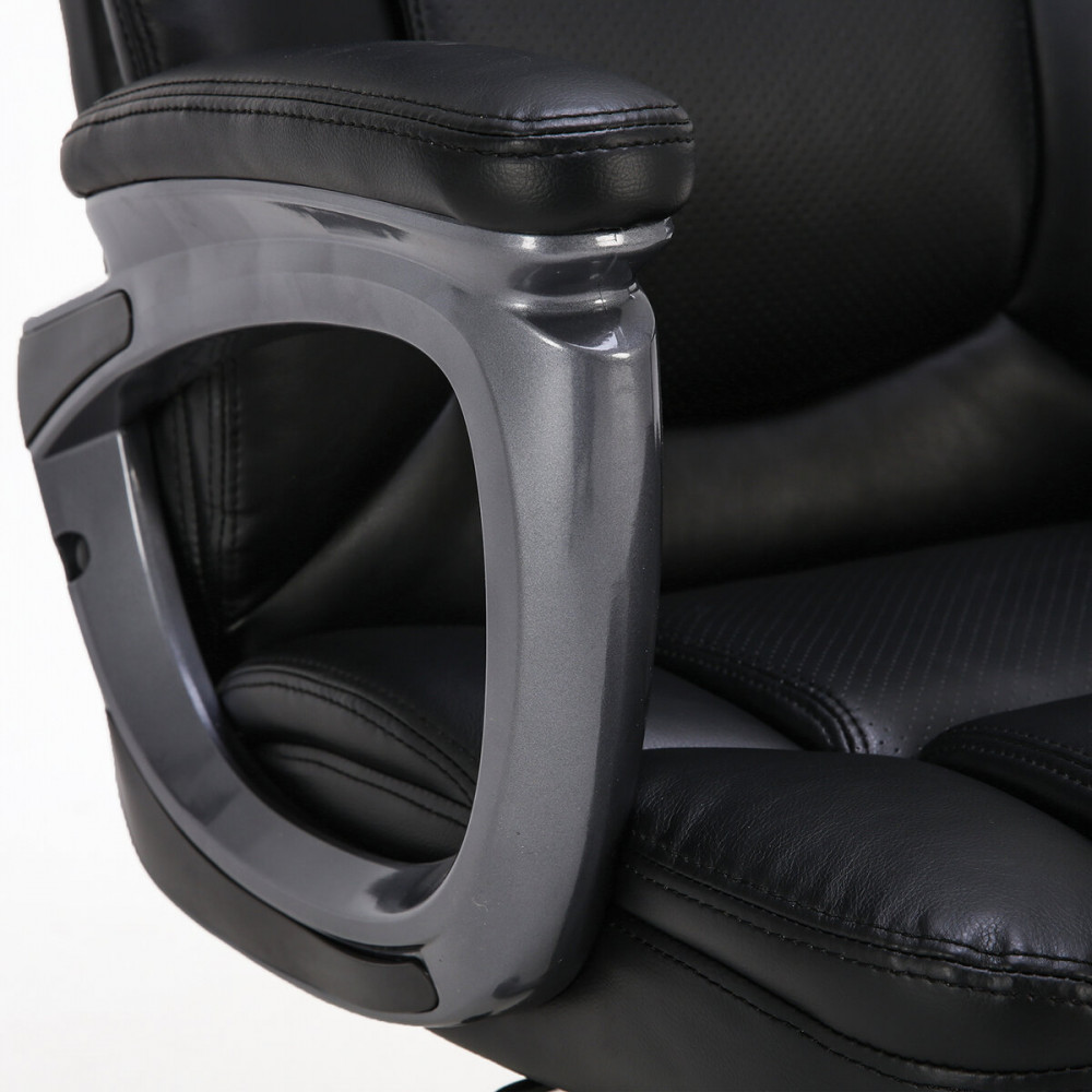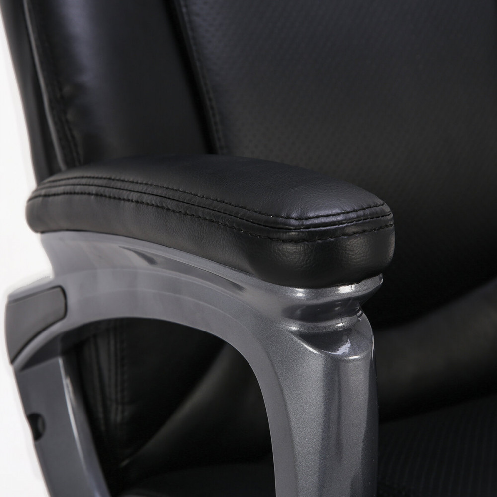 Обивка кресла выполнена из рециклированной кожи — современного материала, созданного из измельченных частиц натуральной кожи. По эластичности и прочности такая кожа максимально близка к натуральной, а также имеет запах выделанной кожи. Материал отлично пропускает воздух, что положительным образом сказывается на комфорте во время эксплуатации. Рециклированная кожа износоустойчива, кресло способно сохранять привлекательный внешний вид длительное время.