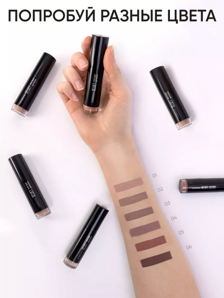 Limoni Жидкие тени для век «Velvet Matte Liquid Eye Shadow», оттенок 002 светло-коричневый