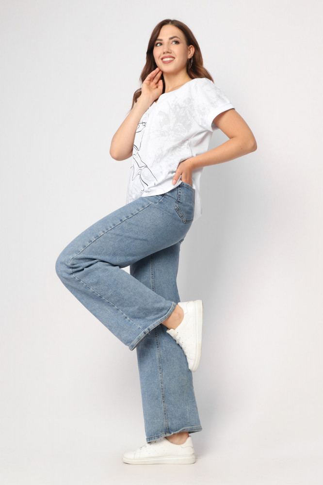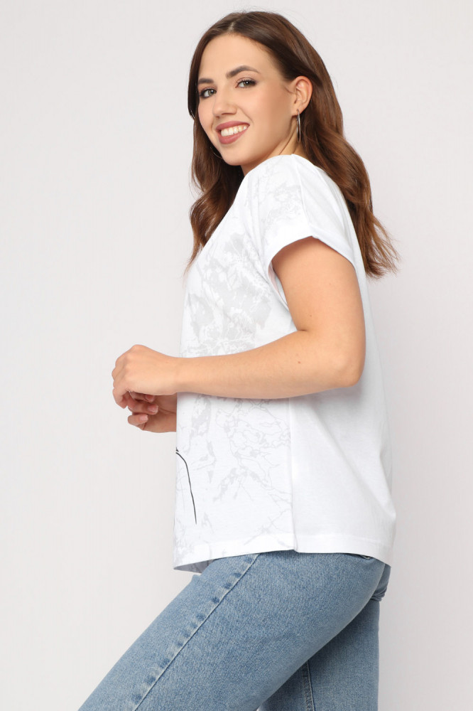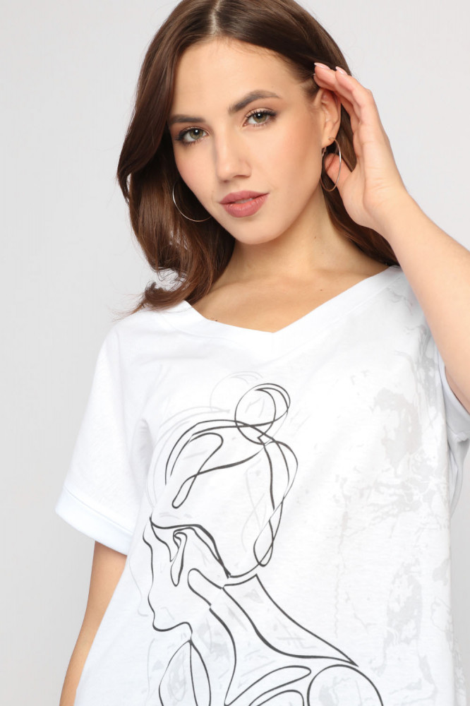 Красивая ,хорошо сшитая футболка. Ткань приятная к телу,хлопок. Крой свободный,вырез глубокий. Брала 54,свободновато,наверное,можно попробовать и 52 размер. Хотя хлопок дает усадку после стирки и возможно будет уже не так свободно. Спасибо за товар и за доставку,товаром довольна.