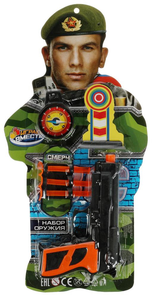 Серия: Смерч Игровой набор оружия «Военный» ТМ «Играем вместе» станет отличным подарком для юного героя благодаря реалистичному дизайну. Пистолет стреляет пулями на присосках. С таким интересным набором ребёнок будет придумывать увлекательные игровые сюжеты. Он также сможет потренировать свою меткость, стреляя из оружия пульками на присосках по мишени. Набор подойдёт для активных игр на воздухе и в помещении. Игры с оружием ТМ «Играем вместе» помогут развить: координацию движений, воображение, ловкость и меткость, внимание, моторику. |